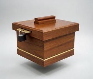 Clever new method. Chest made of select walnut hardwood, a plush velvet cushion lines the bottom of the chest; a brass locking plate and brass lock. Complete detailed instructions. Instant reset.